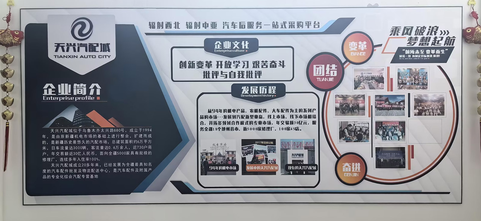 天興汽配城位于烏魯木齊太興路880號,成立于1994年,是由原新疆機(jī)電市場的基礎(chǔ)上進(jìn)行整合,擴(kuò)建而成的,是新疆歷史最悠久的汽配市場,總建筑面積約6萬平方米,日車流量達(dá)3000輛,客流量達(dá)0.6萬余人,近730戶商戶,年交易額近30億人民幣,面向全疆5000家具有規(guī)模的修理廠,連續(xù)多年入住率100%。