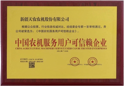 中國農(nóng)機(jī)服務(wù)用戶可信賴企業(yè)