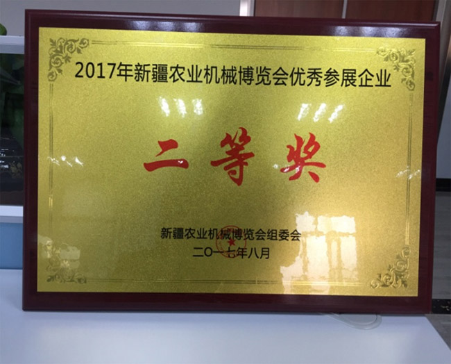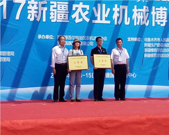 在討論會結束后的頒獎儀式中,由自治區(qū)農機局穆局長及兵團農機局丁局長為我公司頒發(fā)了“2017年新疆農業(yè)機械博覽會優(yōu)秀參展企業(yè)”榮譽獎牌。