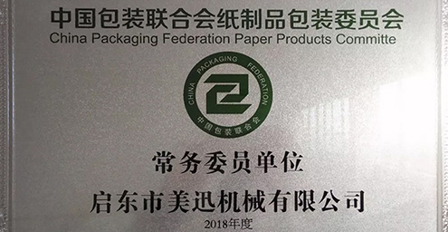 熱烈慶祝啟東市美迅機械榮獲“中國包裝聯(lián)合會紙制品包裝委員會常務(wù)委員單位”